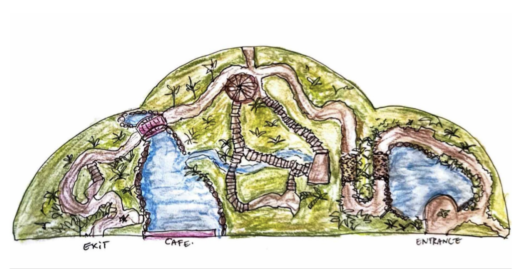 Floor plan sketch for Yumenoshima Tropical Greenhouse Dome